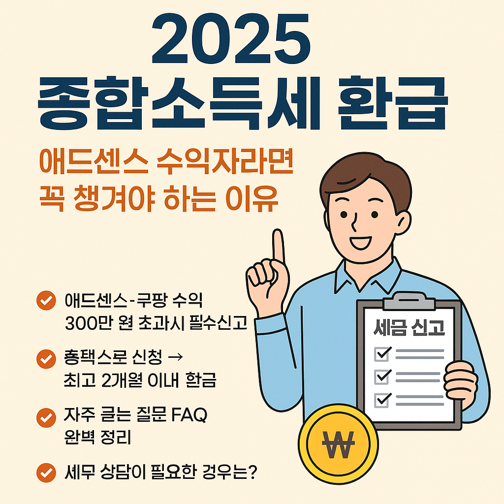 부업을 하시는 분, 애드센스나 쿠팡 파트너스, 전자책 수익이 있는 분이라면 꼭 주목하세요! 2025년 종합소득세 신고를 통해 수십만 원까지 환급받을 수 있습니다.